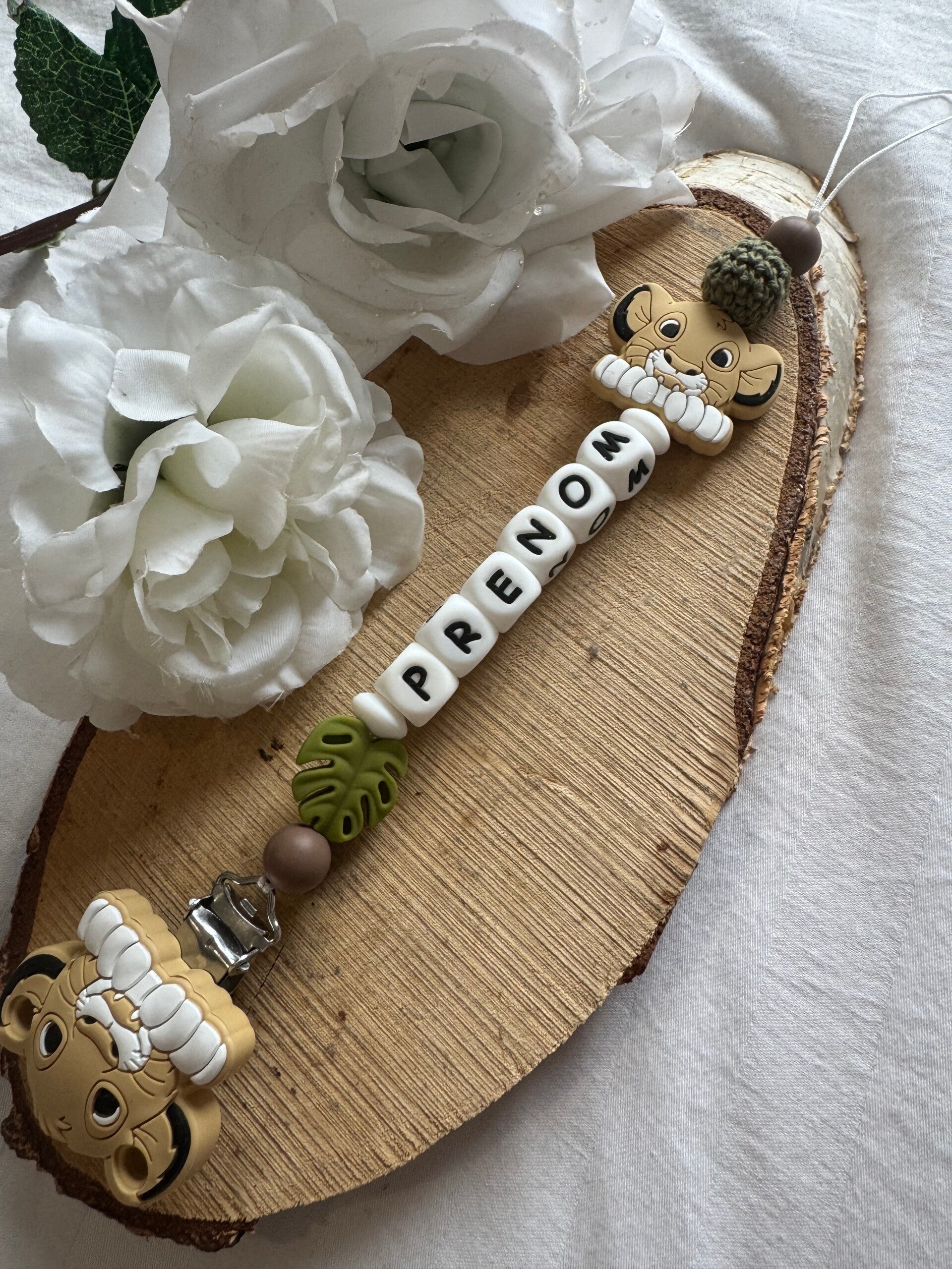 🌸 Modèle dans les tons Kaki avec perles + clip Symba🌸